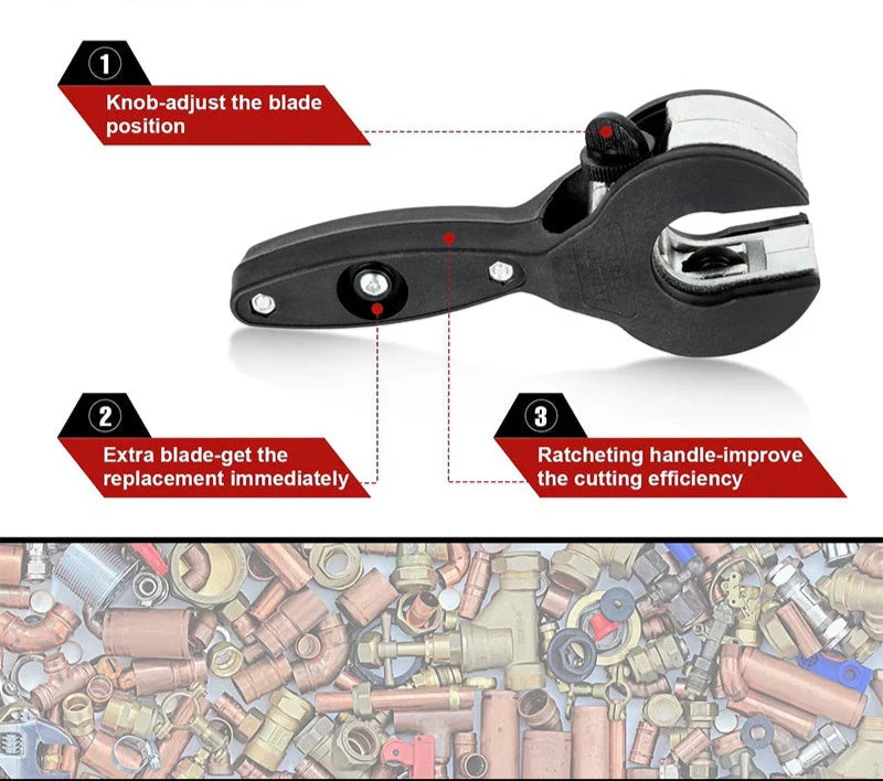 ✔ Efficient Cutting in Tight Spaces: Designed for cutting copper, PVC, and soft metal pipes, this tool is perfect for operating in confined areas, saving you the hassle and time of disassembling nearby fixtures.